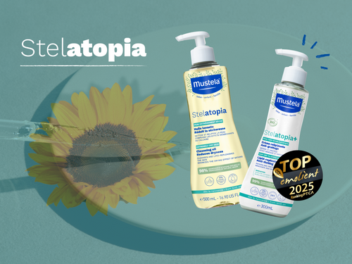 Nasza seria Stelatopia, bezzapachowa i wyprodukowana z organicznego oleju słonecznikowego, pomaga wzmocnić barierę ochronną skóry i zmniejszyć zaczerwienienia u całej rodziny.